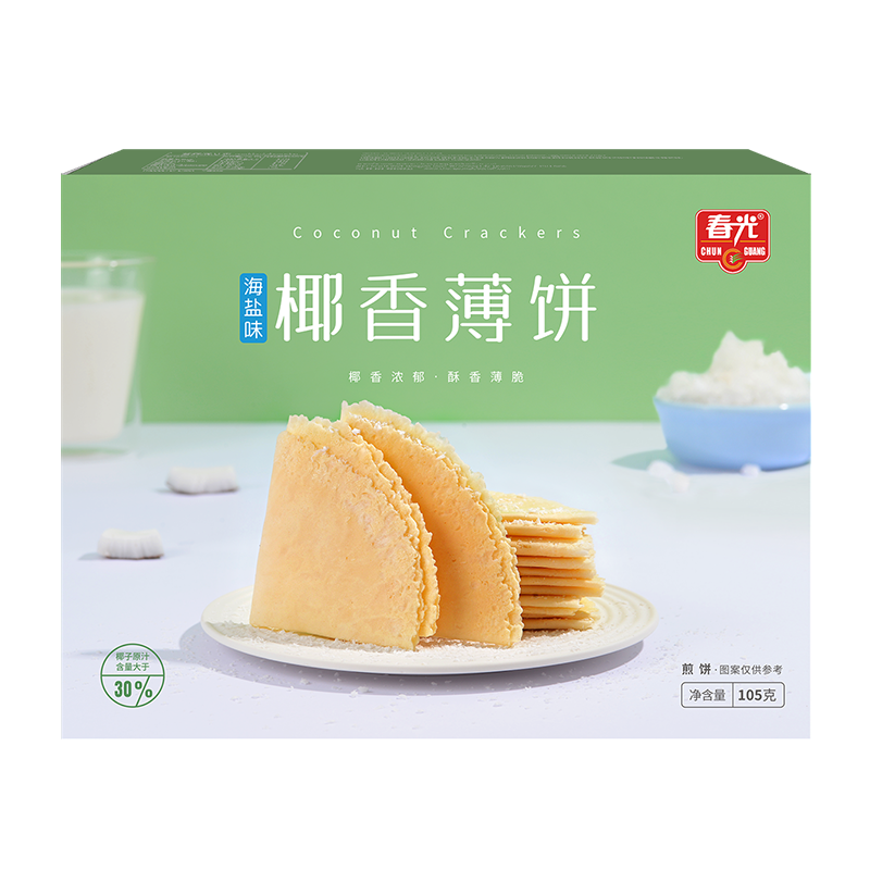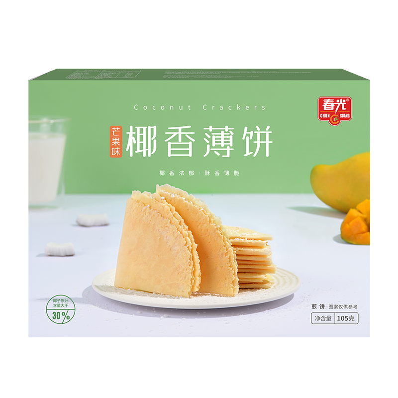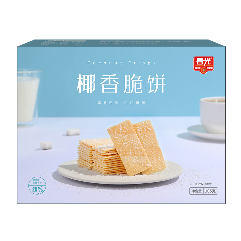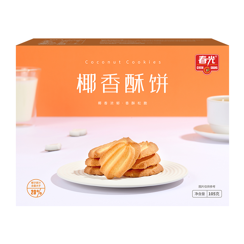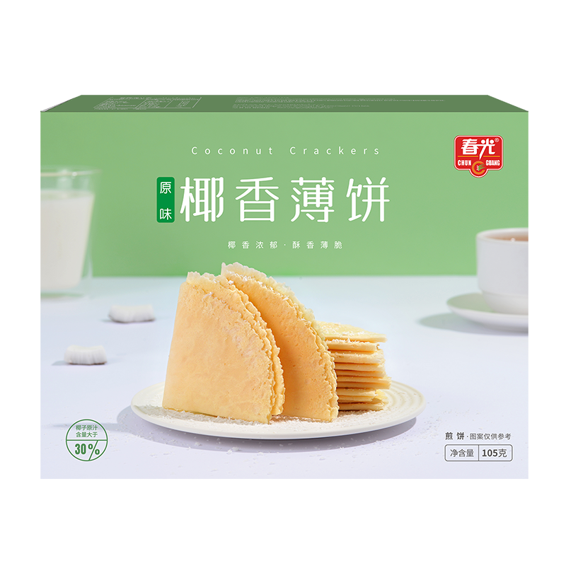 椰子汁(35.3%)、小麦粉、白砂糖、人造奶油、食用调和油、鸡蛋、食品添加剂(单,双甘油脂肪酸酯)、食用盐。