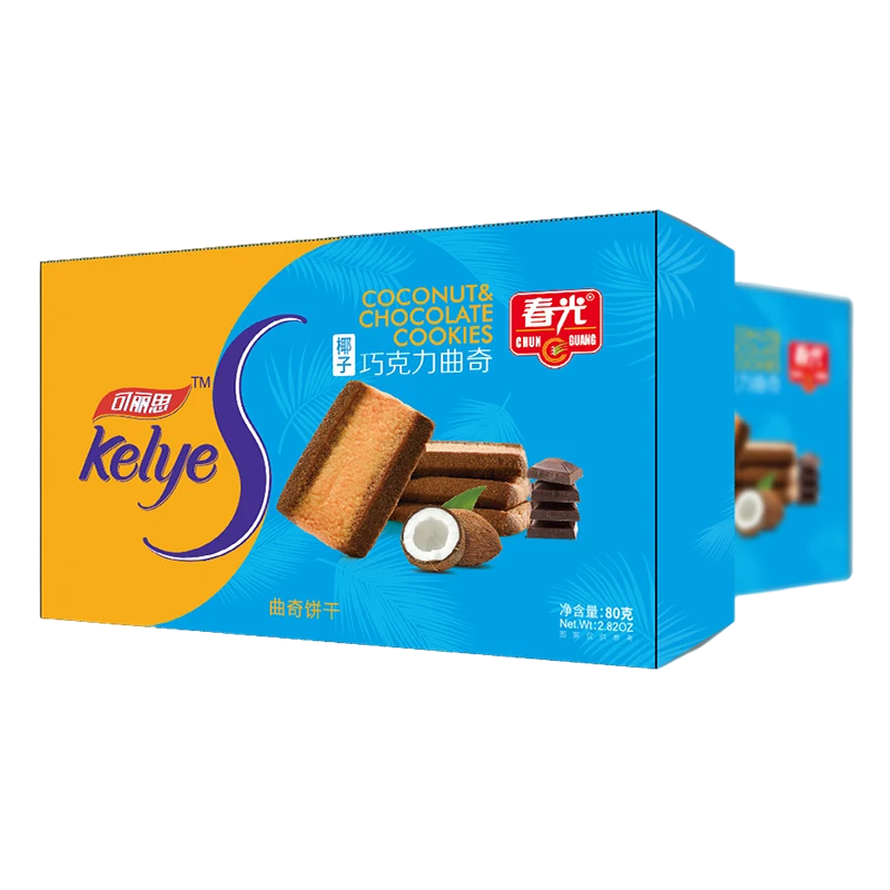 小麦粉、白砂糖、食用油脂制品、椰子原汁、鸡蛋、椰蓉、淀粉、黄油、全脂乳粉、可可粉、碳酸氢钠、食用香精、碳酸氢铵、复配膨松剂(碳酸氢钠、焦磷酸二氢二钠、葡萄糖酸-δ-内酯、磷酸二氢钙、柠檬酸、磷酸三钙、玉米淀粉)。