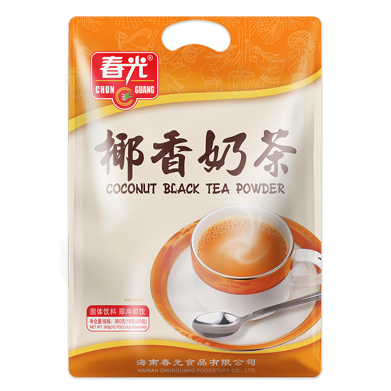 植脂末【植物油、玉米糖浆、食品添加剂(酪蛋白酸钠、单,双甘油脂肪酸酯、硬脂酰乳酸钠、磷酸氢二钾、柠檬酸钠、二氧化硅)】、白砂糖、全脂乳粉、椰子粉、干酪粉、红茶粉。
