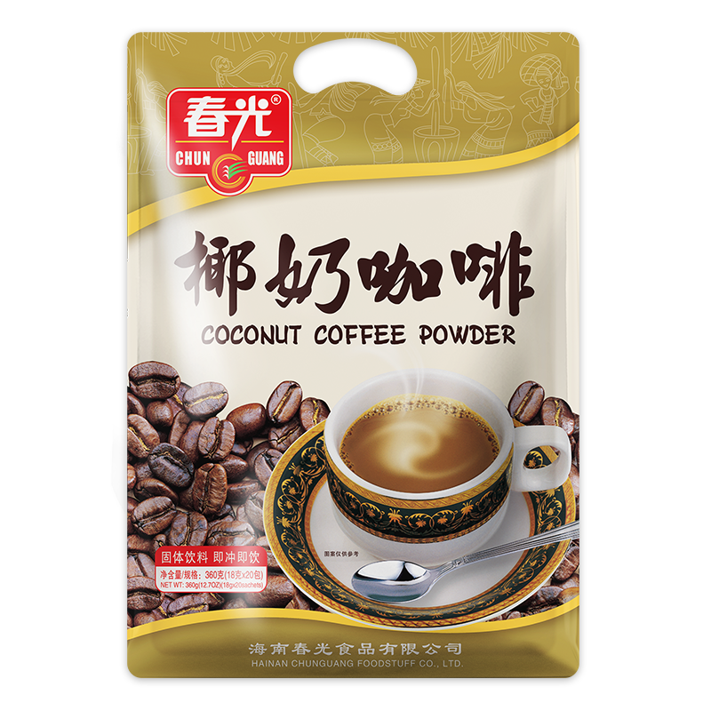 白砂糖、植脂末【植物油、玉米糖浆、食品添加剂(酪蛋白酸钠、单,双甘油脂肪酸酯、硬脂酰乳酸钠、磷酸氢二钾、柠檬酸钠、二氧化硅)】、椰浆粉【椰子原汁、麦芽糊精、食品添加剂(酪蛋白酸钠、大豆磷脂、单,双甘油脂肪酸酯、卡拉胶、辛烯基琥珀酸淀粉钠、D-异抗坏血酸钠)】、咖啡粉。