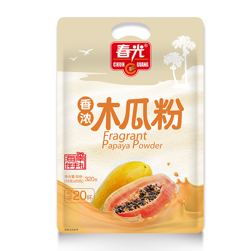 木瓜汁、白砂糖、植脂末【植物油、玉米糖浆、食品添加剂(酪蛋白酸钠、单,双甘油脂肪酸酯、硬脂酰乳酸钠、磷酸氢二钾、柠檬酸钠、二氧化硅)】。