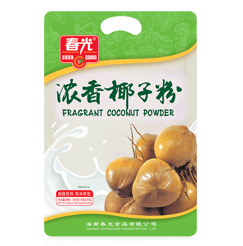 白砂糖、植脂末【植物油、玉米糖浆、食品添加剂(酪蛋白酸钠、单,双甘油脂肪酸酯、硬脂酰乳酸钠、磷酸氢二钾、柠檬酸钠、二氧化硅)】、椰子汁、可可粉、麦芽糊精、食品添加剂(β-环状糊精、酪蛋白酸钠、大豆磷脂、单,双甘油脂肪酸酯、卡拉胶、羧甲基纤维素钠)。
