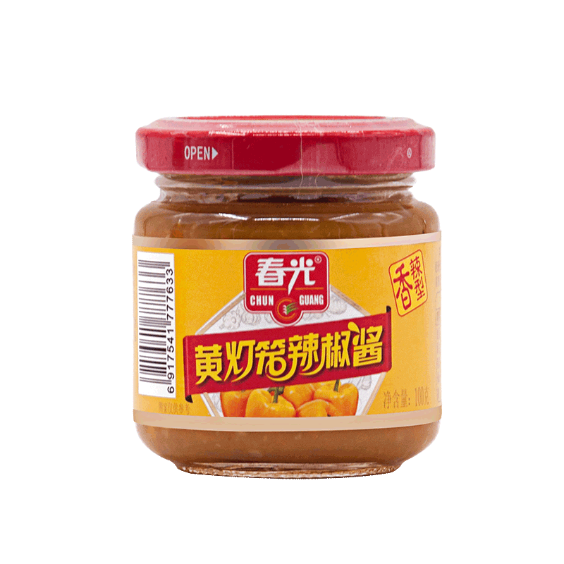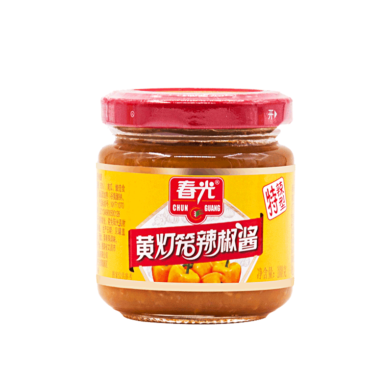 黄灯笼辣椒(46%)、南瓜、蒜泥、食醋、食用盐、食品添加剂(谷氨酸钠、维生素C)
