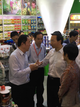 2015海南冬交会期间,海南春光食品馆凭借 “生机勃勃、绿色健康”的双层独特展台、创新的推介形式、以及琼台两岛知名主持人现场互动传递“两岸一家亲”的情怀,获得诸多市民游客及国际友人的交口称赞。12月14日,海南省委副书记李军及文昌市委副书记、市长何琼妹一行莅临春光馆参观指导,不仅认可了以产品体验、现场互动为主的春光馆,还对其学习创新精神及深化农产品加工项目给予充分的肯定。