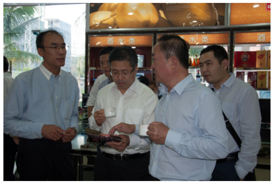春光食品董事长黄春光在会上代表海南特色商品企业做了发言,并在会后陪同中国石化全国易捷总经理等一行参观春光东郊工厂。