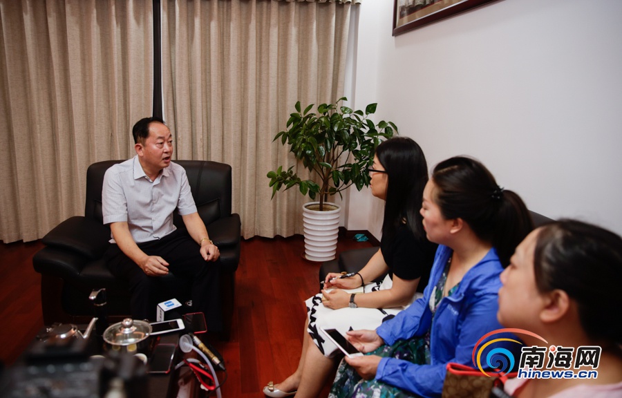 海南春光食品有限公司董事长兼总经理黄春光接受记者采访。南海网记者刘洋摄