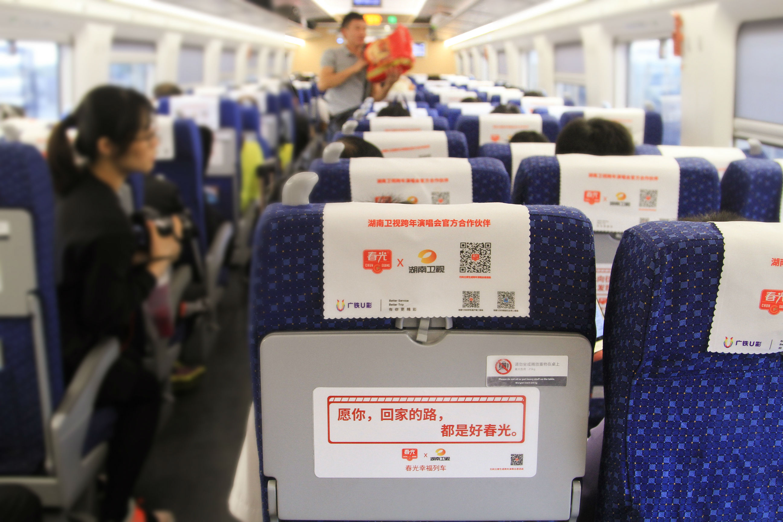 去年,春光用一座椰子王国让各地的游客领略了一回海南的椰乡风情,通过这张海南文化旅游的新名片,让椰子故事和海南风土人情被更多人所知。而今年,在跨年演唱会期间同期上线的还有春光幸福列车,在海口~三亚的动车上,被暖心文案包围的车厢正载着一颗颗奋斗在不同岗位上的游子的心甜蜜回家。“有爸妈在的地方,多远都不远。”、“累过哭过失望过,但没关系,都会好的。”、“在乎的不是一起跨年,而是跨过很多年后还是你。”......如此类似的文案,在动车车厢的小桌板、行李架上方随处可见,温暖着每一位乘客。