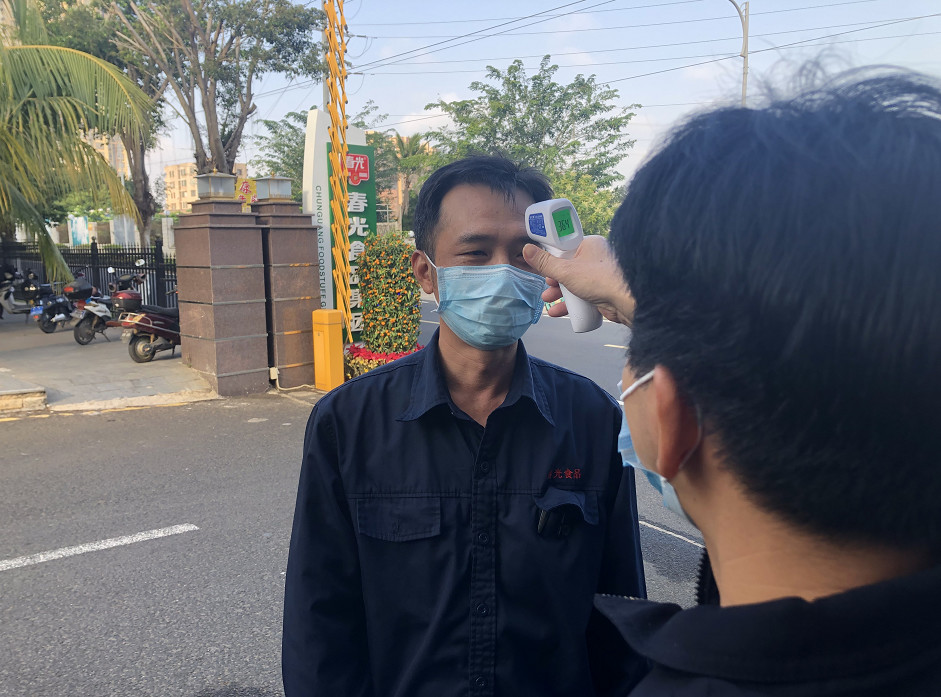 在总公司,每天对办公地点进行全面消毒,对出入员工进行体温测量。