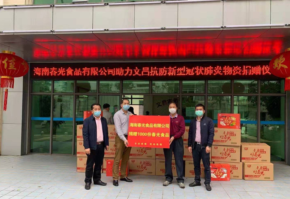 2月5日,海南春光食品向文昌市一线防疫医务人员和集中医学观察点共捐赠了1000份食品,助力文昌市疫情防控工作。
