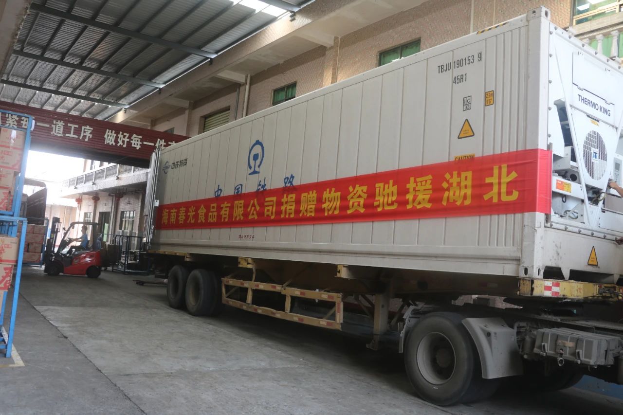 3月30日早上8点,满载春光食品的物资运送货车从海南春光食品工厂出发,千里驰援湖北。