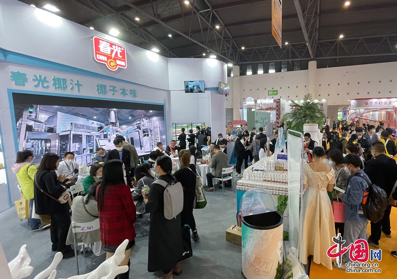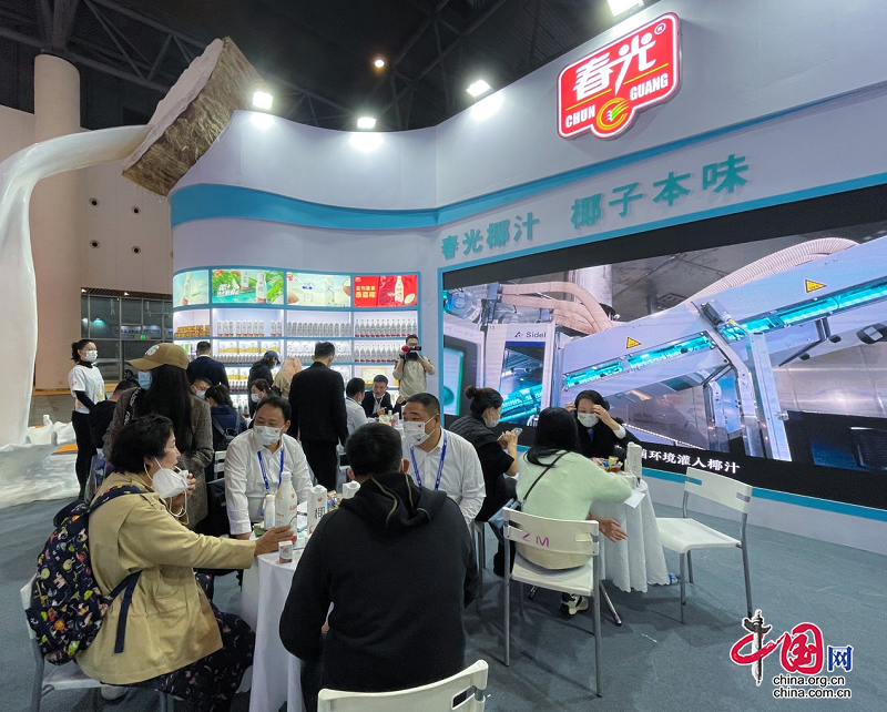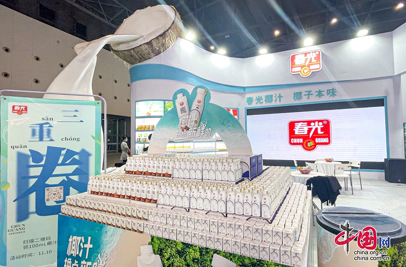 在参展商品中,春光食品带来的春光椰汁、一口鲜气椰汁备受瞩目。