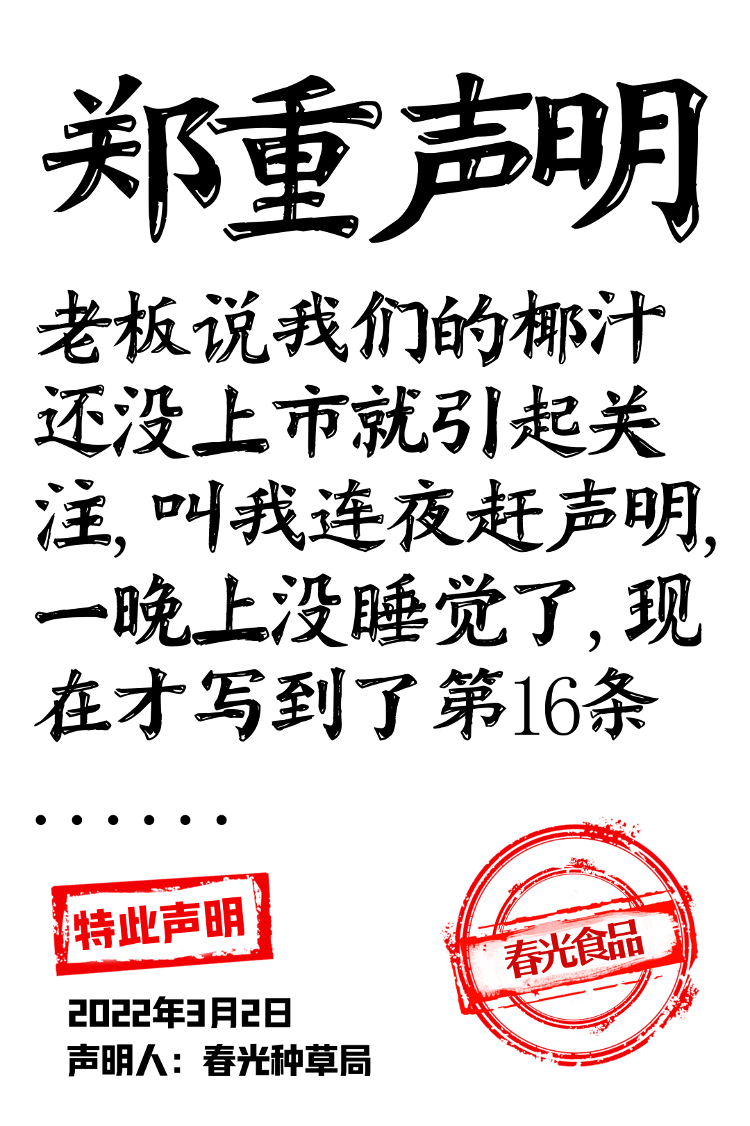 接下来,我们也将持续关注春光椰汁的未来发展,一起拭目以待!